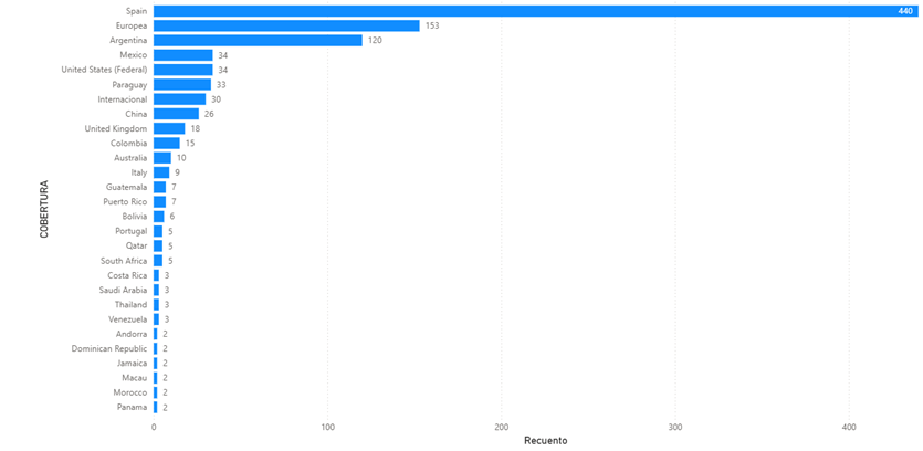 De igual modo, se muestra a continuación la cobertura, es decir, los destinos principales en los que fueron registrados estas marcas: